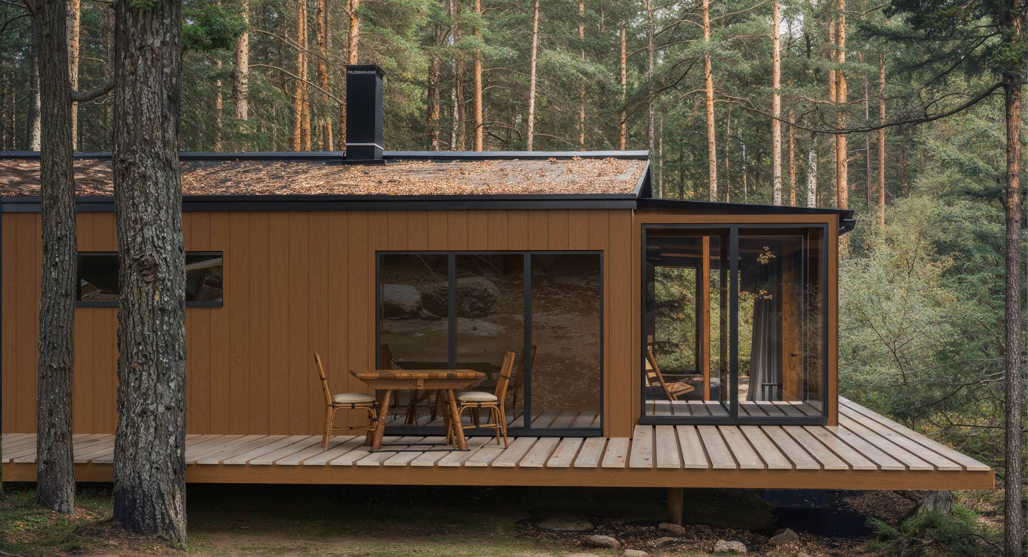 The elevated porch provides a seamless transition between indoors and outdoors, ideal for relaxation in nature. Thanks to the durable and low-maintenance finish, the cladding remains beautiful for years, without the drawbacks of real wood.