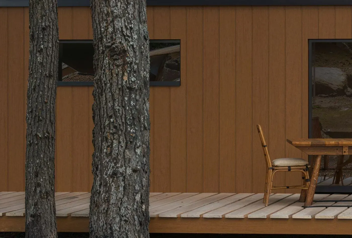 This beautiful house in the woods demonstrates how Kerama Harvest cladding blends perfectly with nature. The warm wood texture and deep tones provide an authentic, rustic appearance.